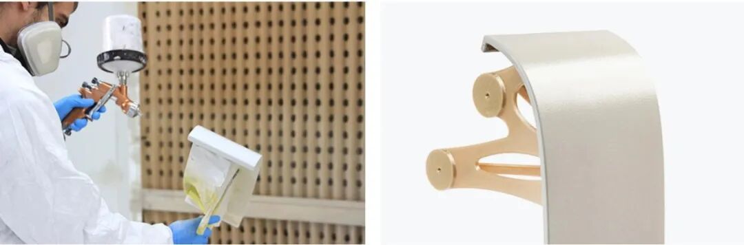 玛瑞斯 3D 打印间隔面板的核心流程:这些间隔面板由玛瑞斯采用熔融沉积成型(FDM)技术完成打印。在表面处理环节,玛瑞斯的定制后处理工艺确保 3D 打印件满足空客严苛的美学标准 —— 打印完成后,面板会采用空客认证的阻燃材料,按客舱涂装要求完成喷漆。